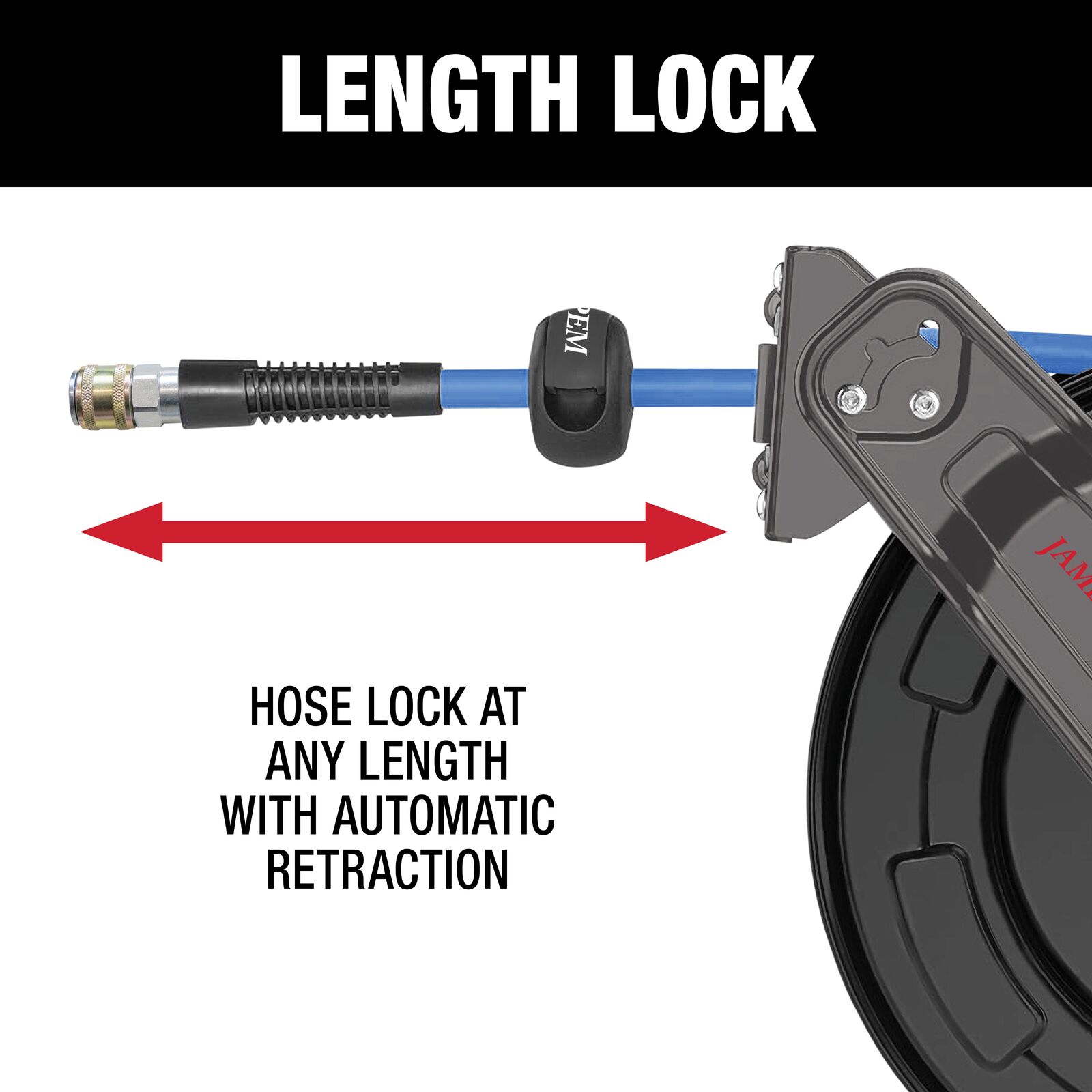 - Effortless operation: Lock the hose at your desired length with the secure metal latching pawl. A simple tug activates smooth automatic rewind.